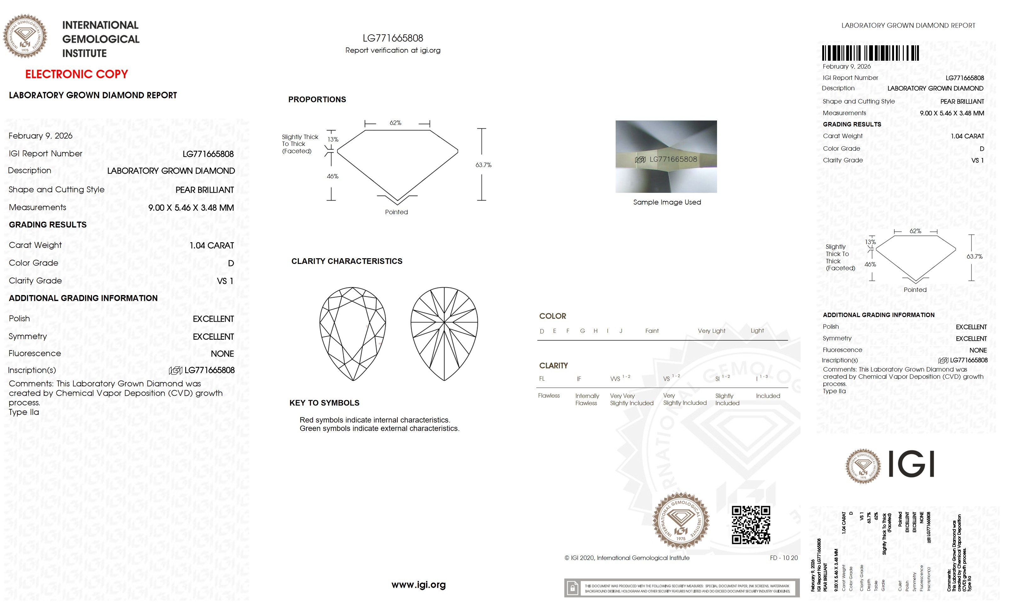 Your diamond’s color rating is D color and in the colorless range. D, E, F are the most chosen color grades.