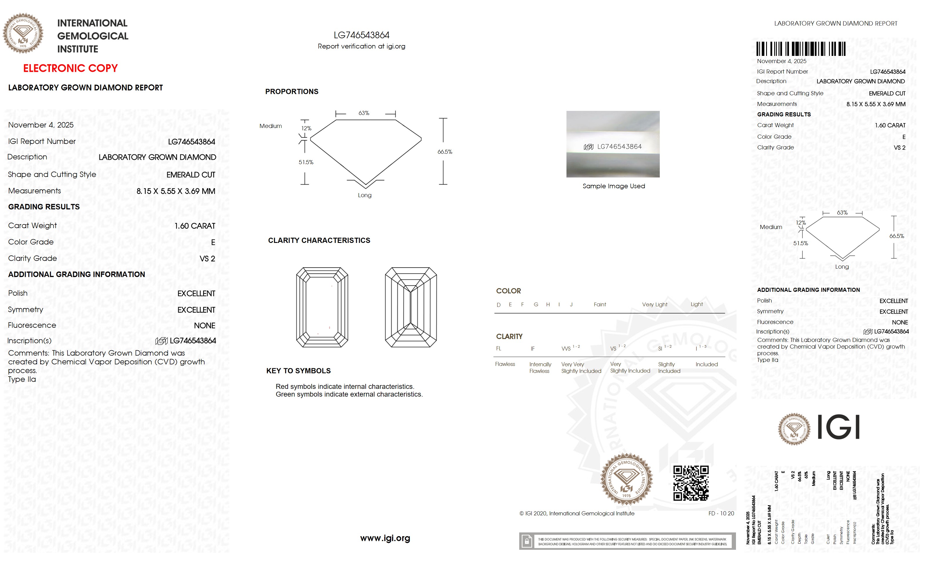 Your diamond’s color rating is E color and in the colorless range. D, E, F are the most chosen color grades.