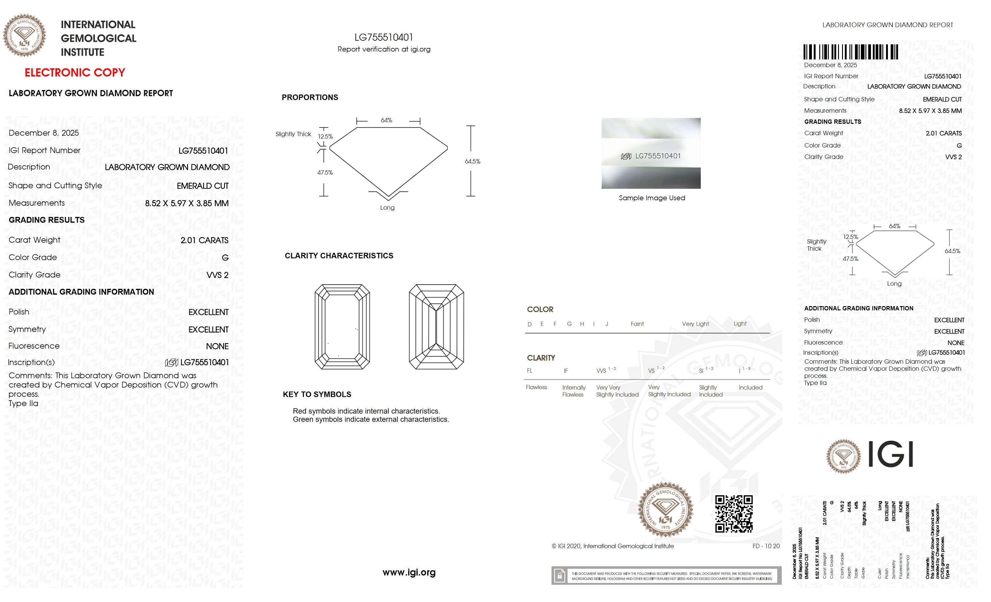 2.01 Carat G-VVS2 Ideal Emerald Lab Created Diamond