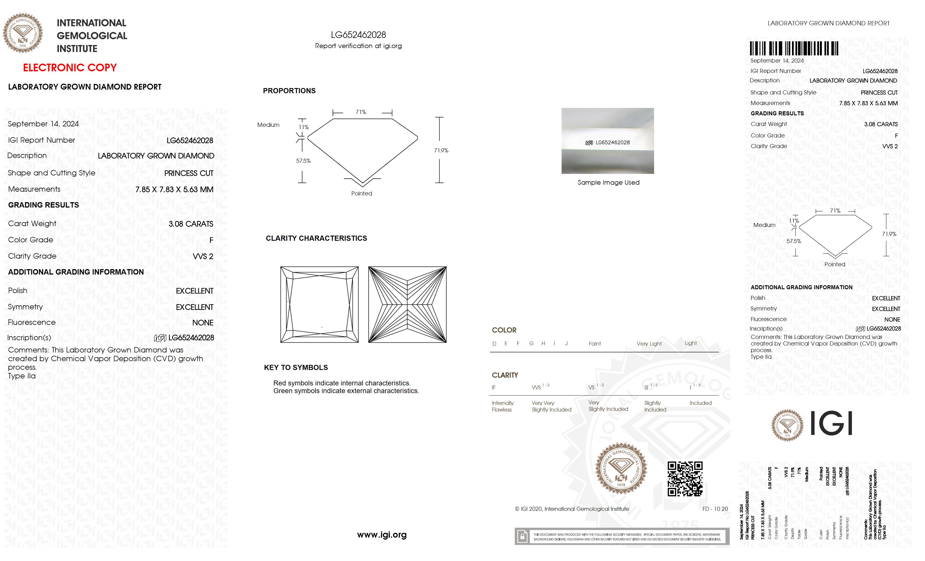 3.08 Carat F-VVS2 Ideal Princess Lab Created Diamond