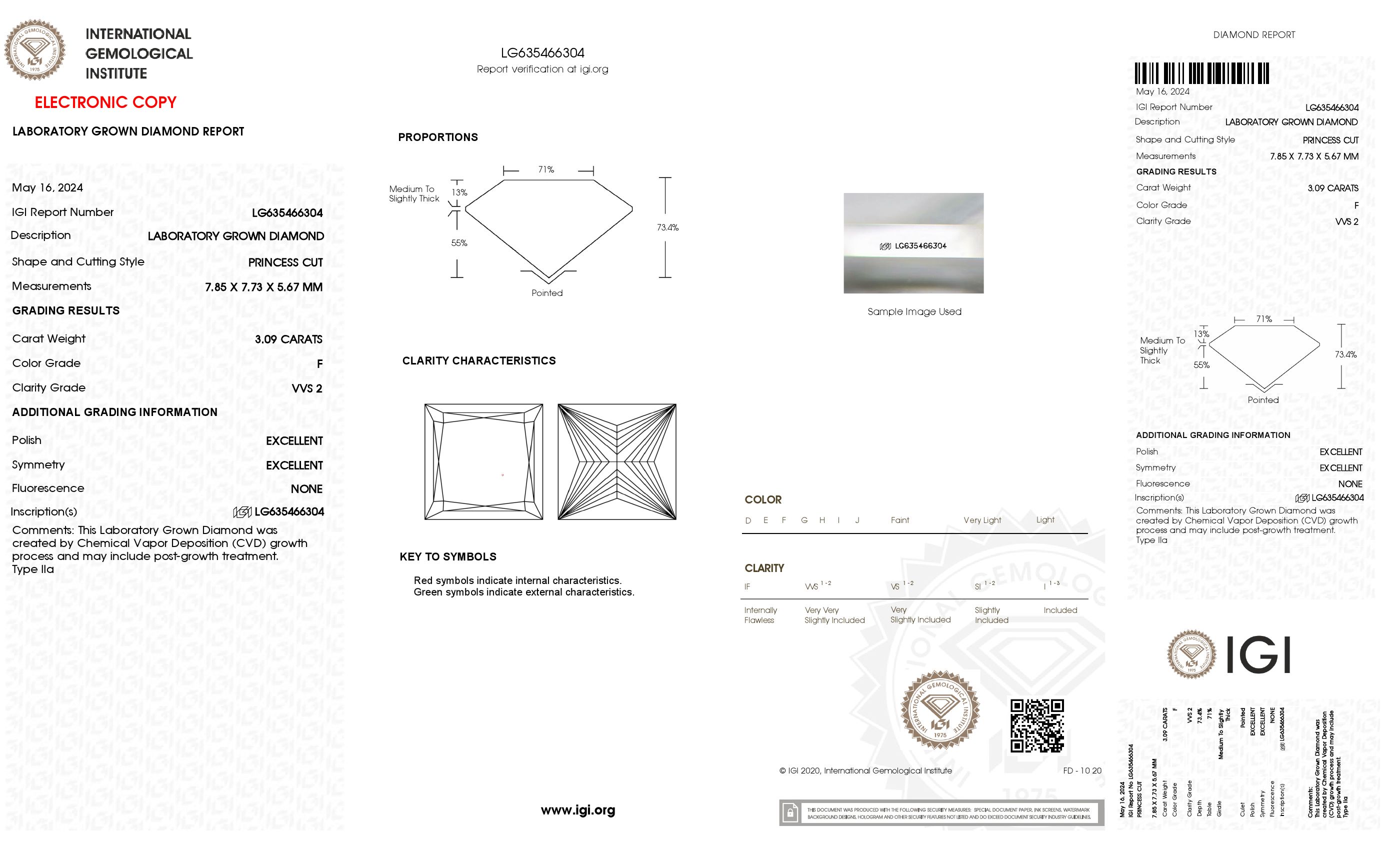 3.09 Carat F-VVS2 Ideal Princess Lab Created Diamond