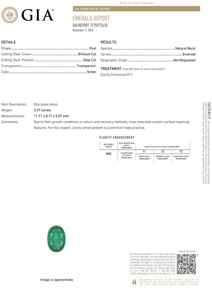 3.37 Carat Oval Cut Green Emerald
